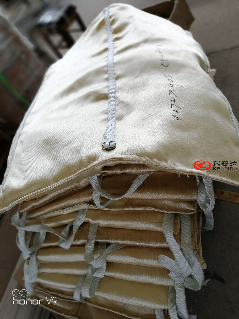 6、 大型設備需要鋼絲加固的,用鋼絲交叉穿過保溫套開口處帶鉤的鉚釘拉緊固定。